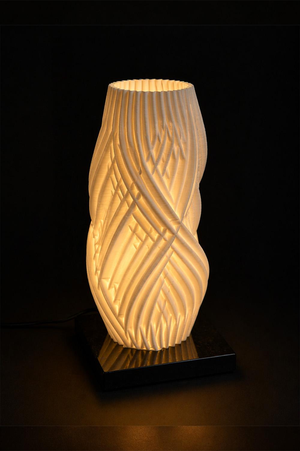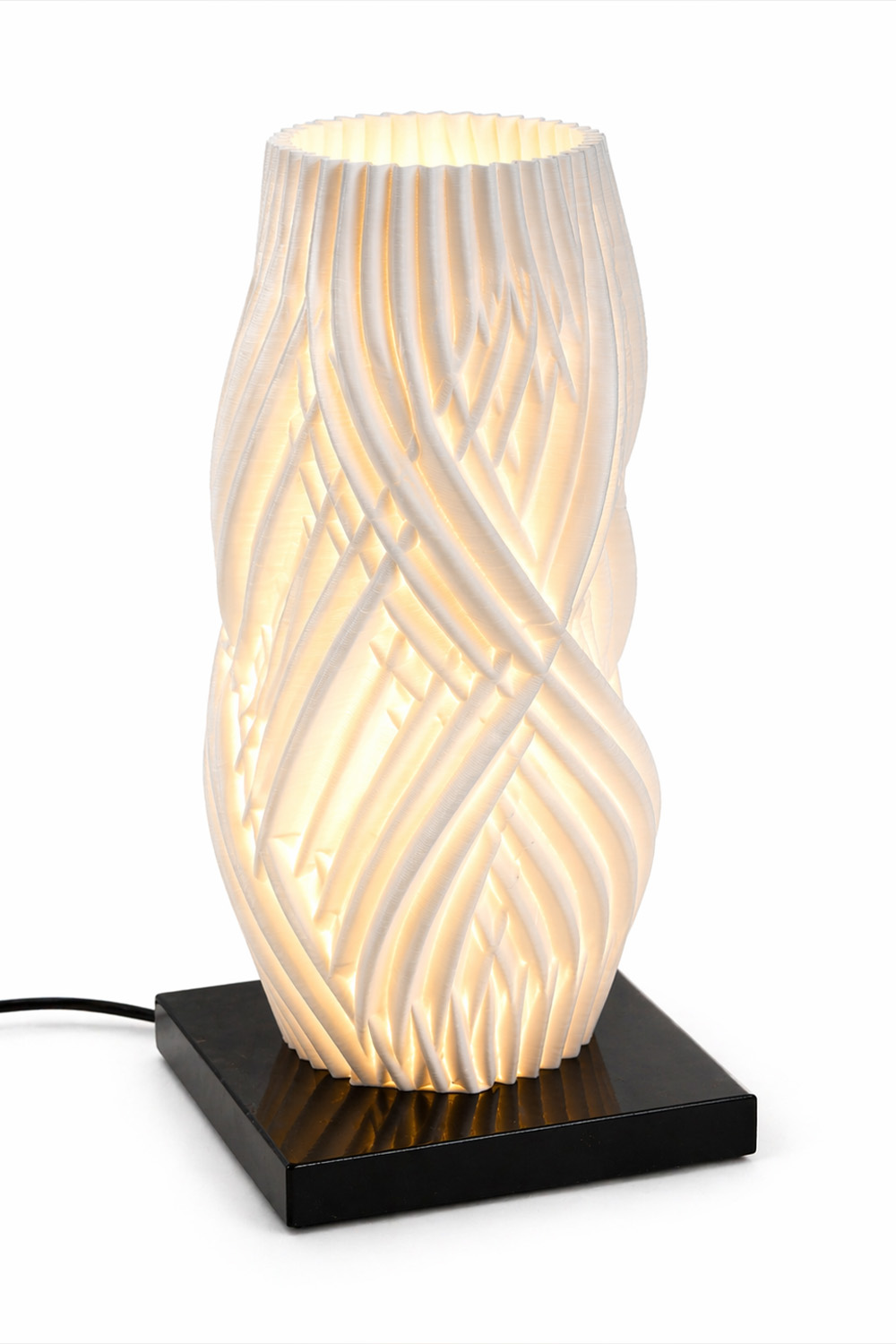 Binary Ceramics this scu;pture 3d printed porcelain piece can be used both as a candle holder and as a lampshade. When paired with a lamp base and light source, it transforms into an elegant ambie elegant ambient light, softly diffusing illumination throughits intricate openwork design. Its versatile from makes it both a fuctional lighting element and a contemporary decrative object . Made in Greece.