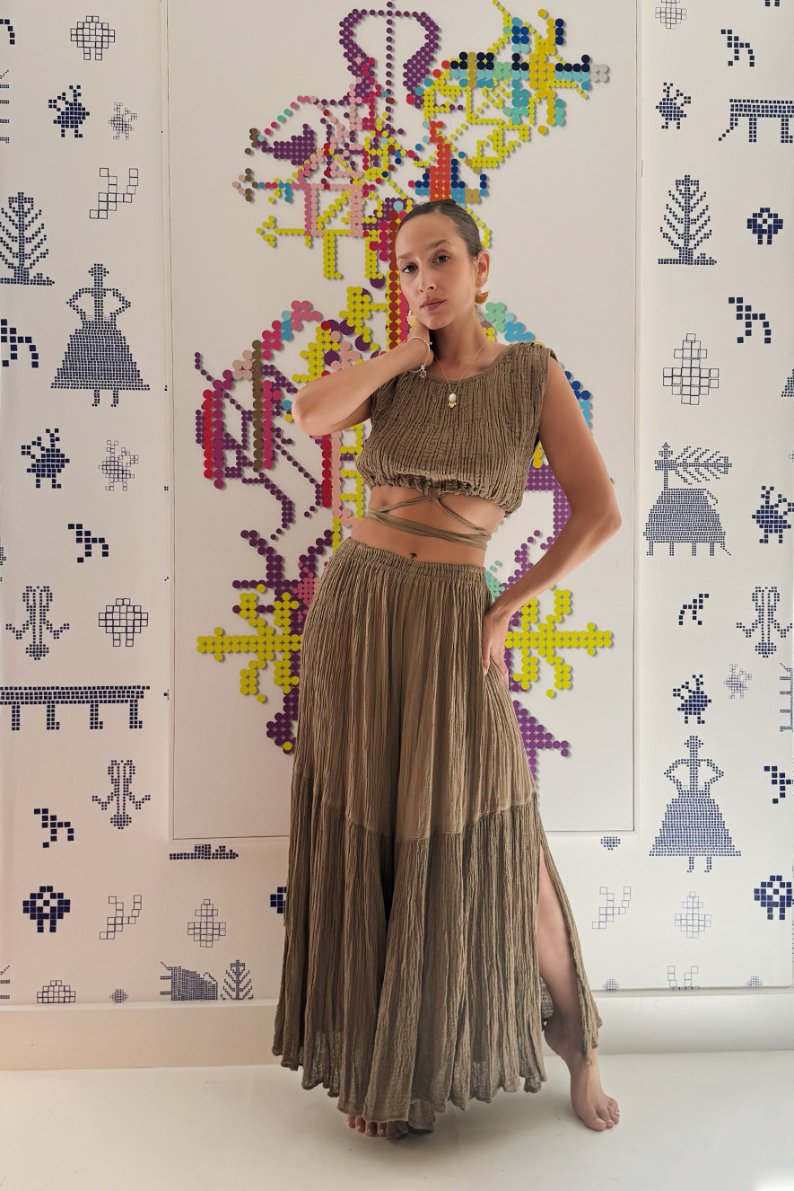 D' Artemide Dido Pants with elastic waist, straight leg, side slits details.Made in Greece.