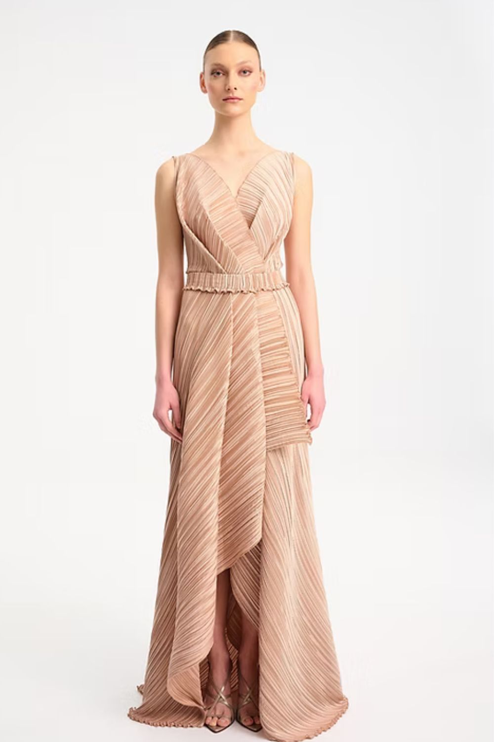 Daphne Valente Chorus is a dress with a folding over top part and asymmetrical skirt. The perfect dress for any special occasion or a red carpet event.
