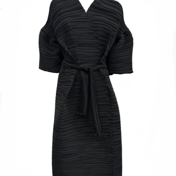 The relaxed silhouette wraps gently around the body, while the matching belt allows for an adjustable fit that flatters every shape. Wide sleeves and a crossover front add comfort and understated luxury.