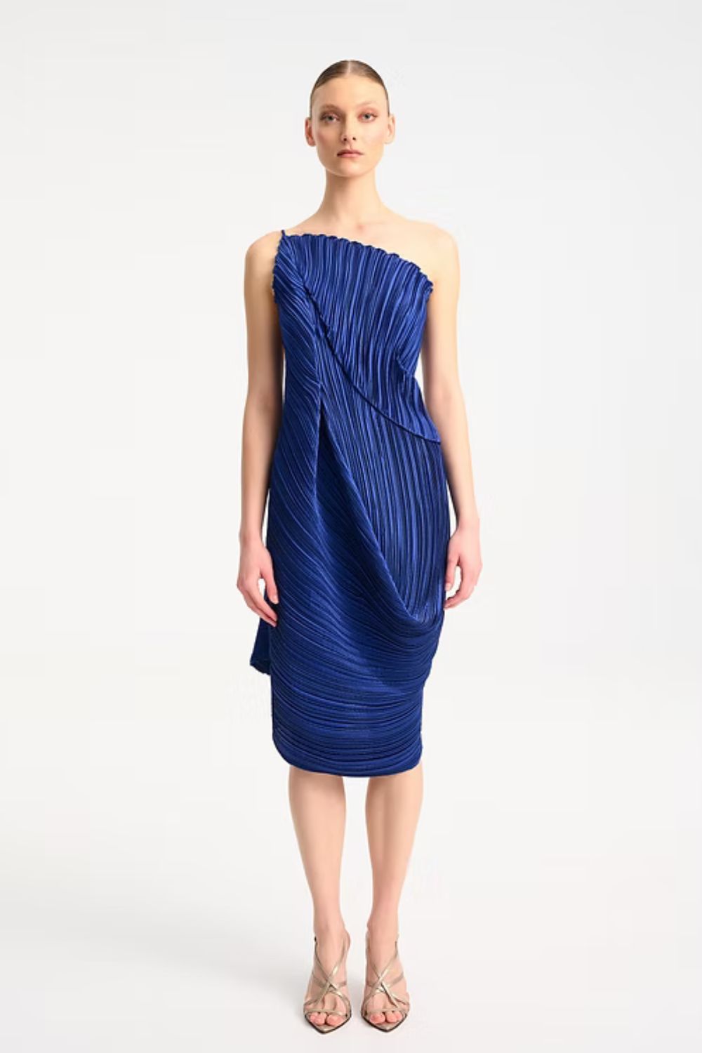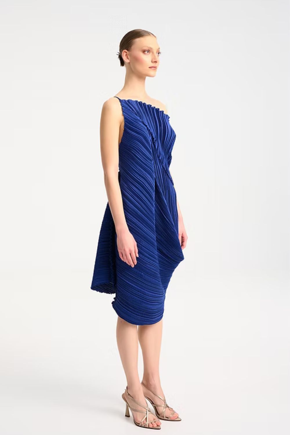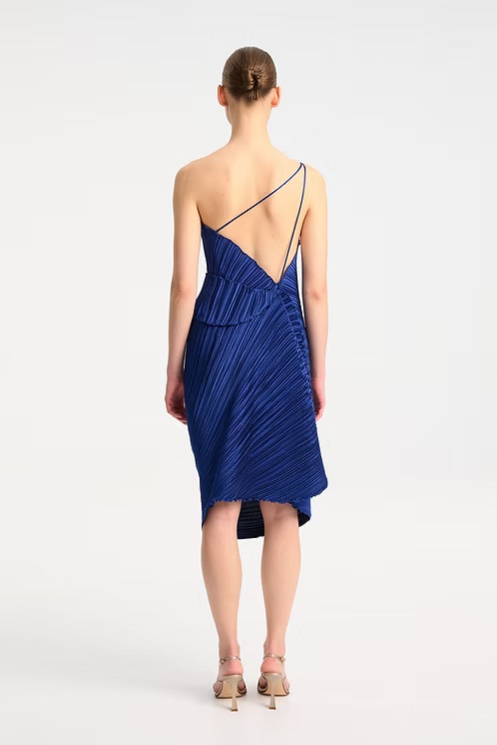 Daphne Valente Schema Pleated Mini Dress Cobalt