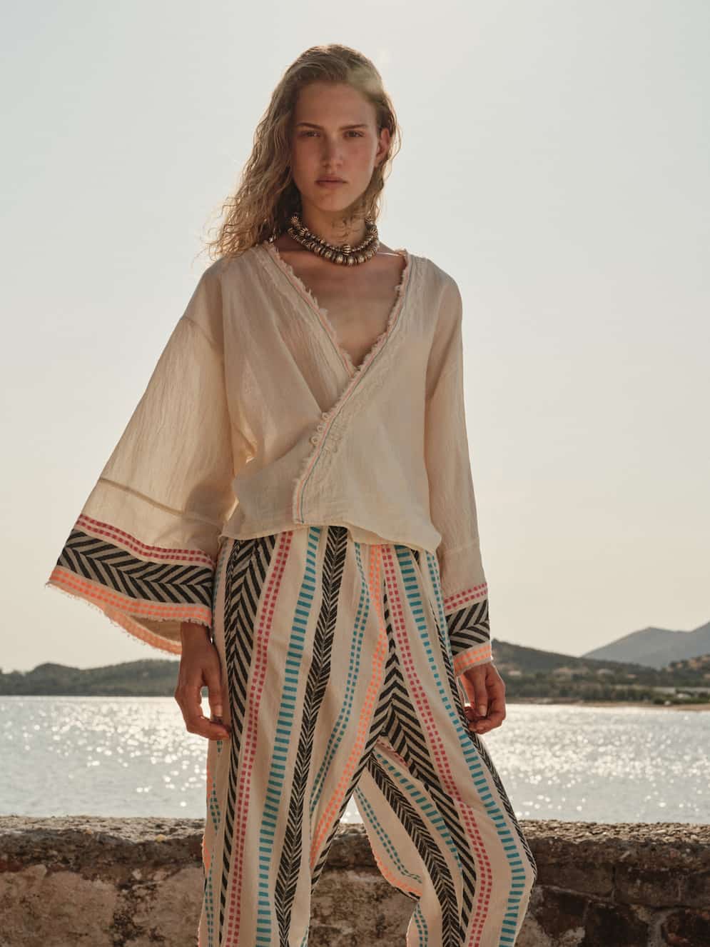Devotion pants with bold jacquard patterns, long, with elastic at the waist. Made in Greece.