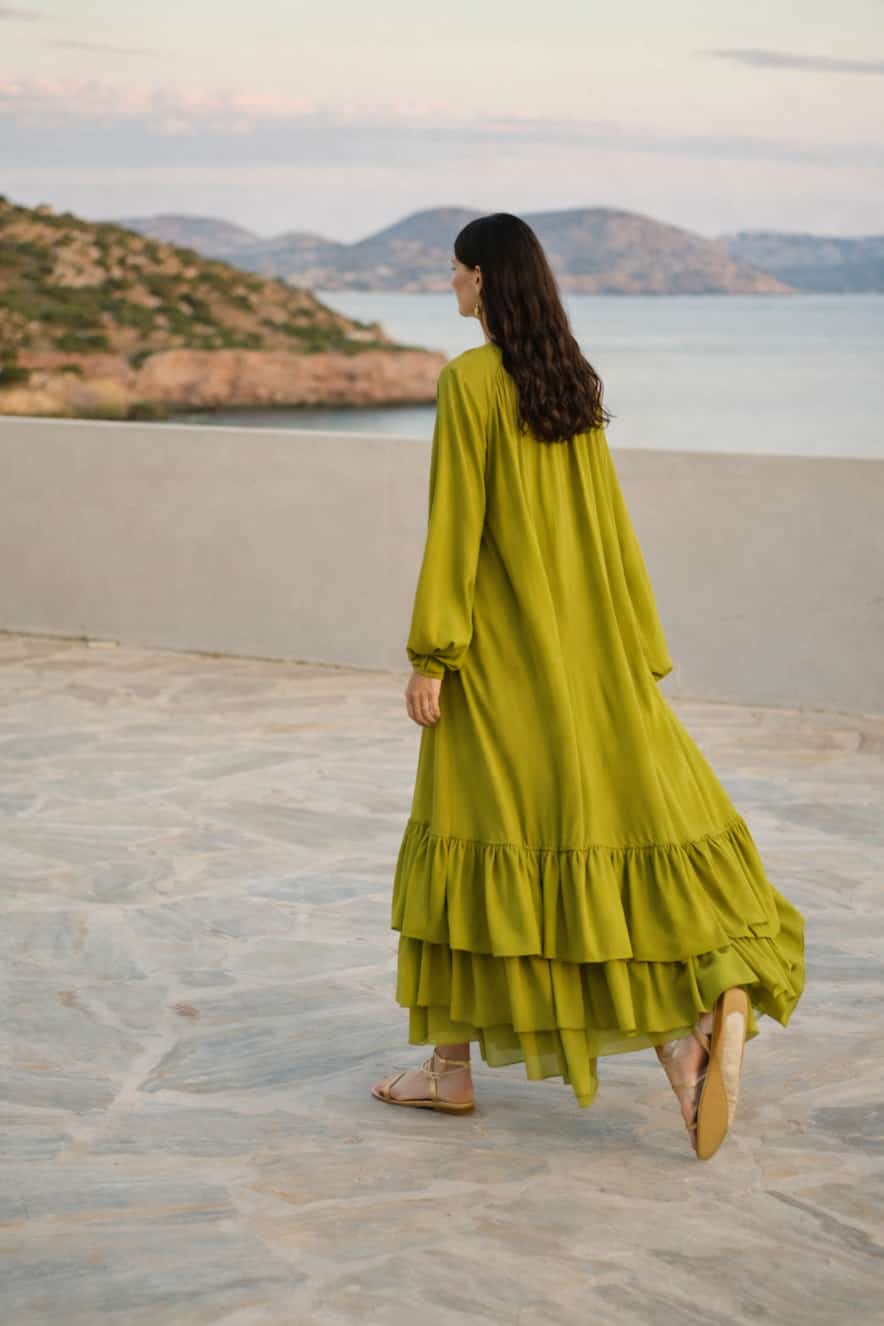 Devotion Long Dress with Ruffles Opal Olive - Image 2