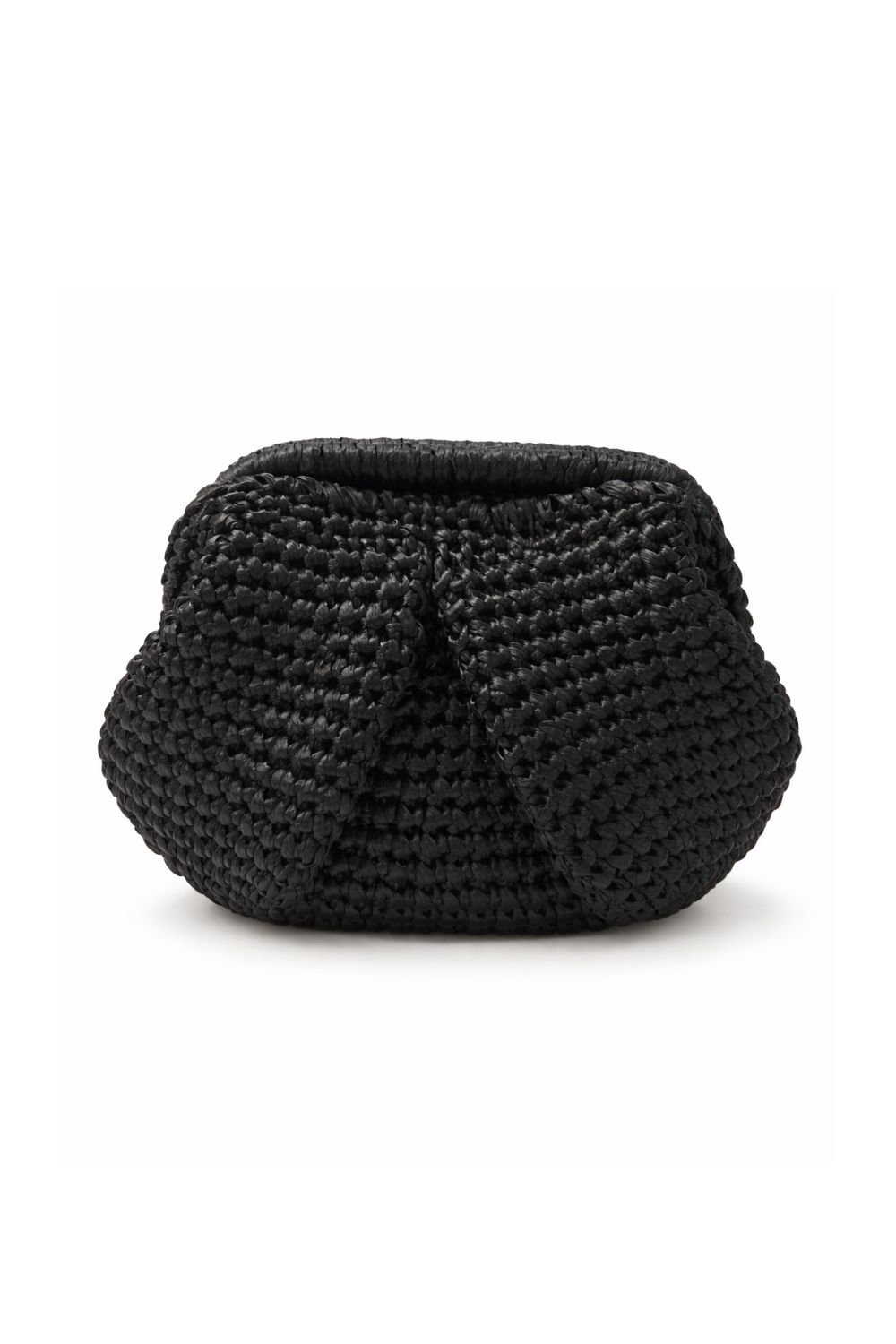 G&K Handcrafters mini clutch, handmade from weaved raffia embellished with pleated details.