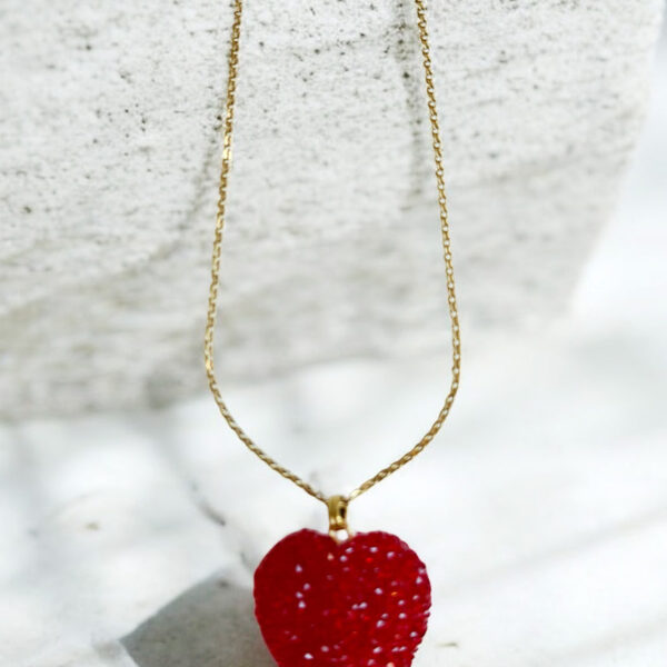 Ifigenia Loukou Jelly heart necklace with long chain. Hand Made. Made in Greece.