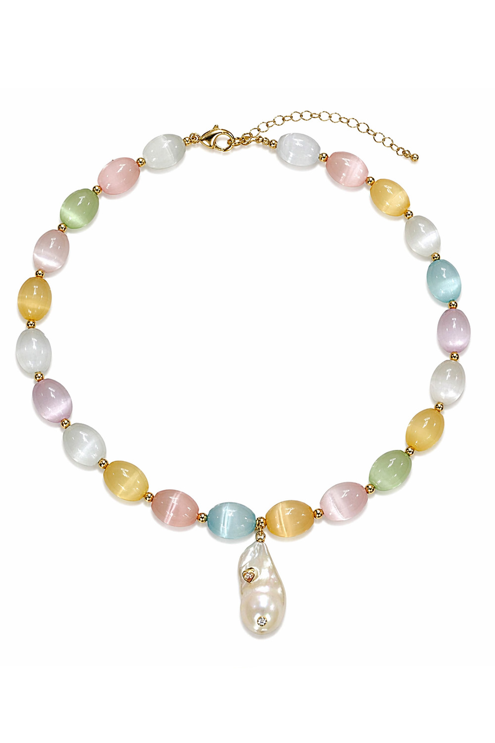 Ifigenia Loukou Rainbow Calcite Necklace with Baroque Pearl and Zircon