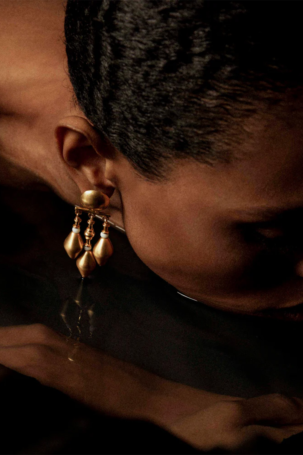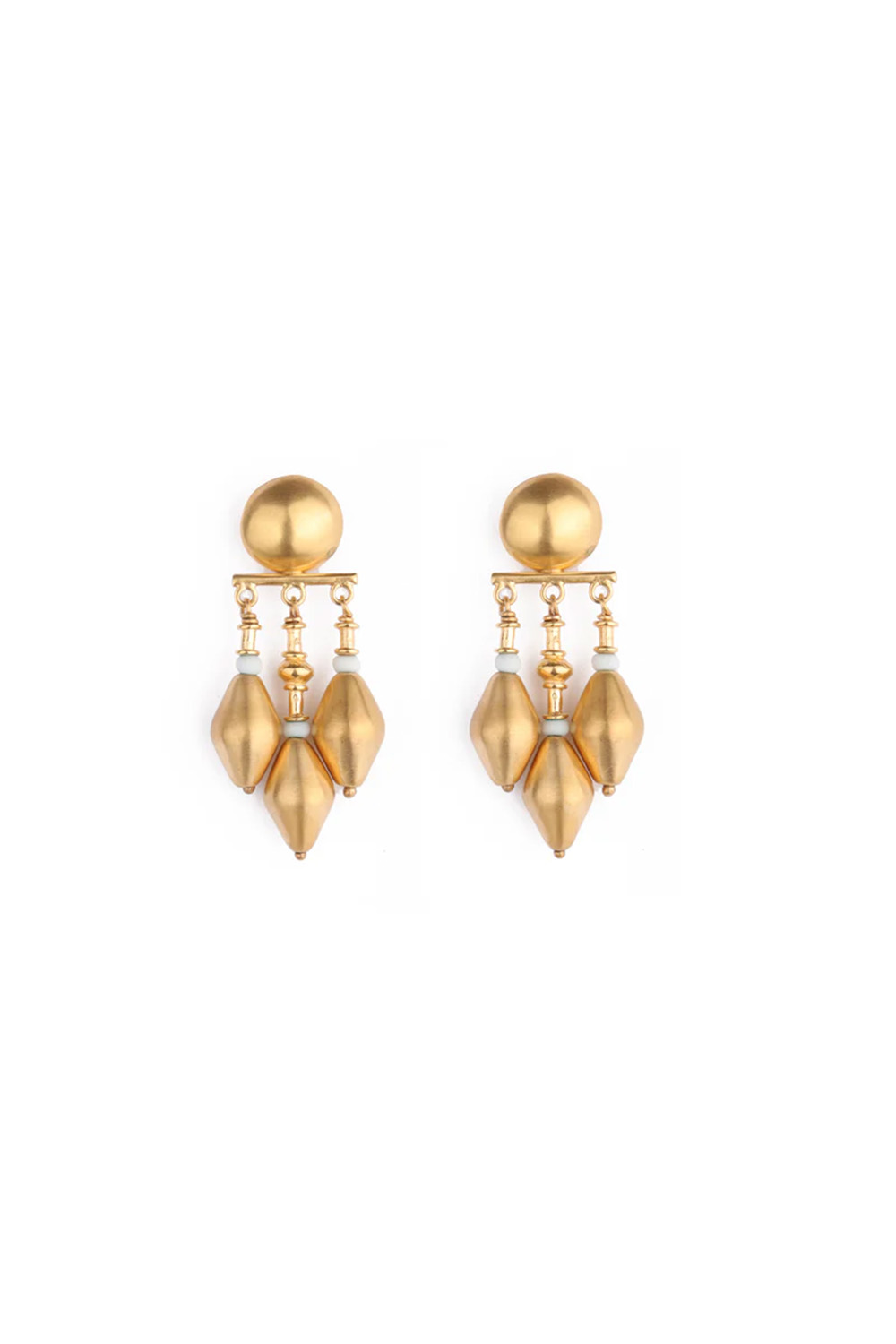 Katerina Makriyianni dramatic and bold, the Cairo Chandeliers drop in a multi-tiered form, like miniature sculptures for your ears. With a touch of luxe flair, they sway beautifully as you move.