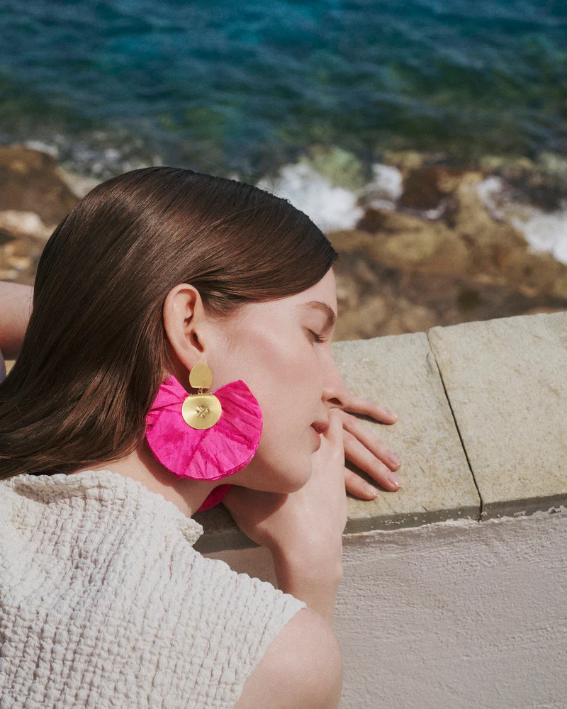 Katerina Makriyianni Silk Fan Earrings Fuchsia - Image 2