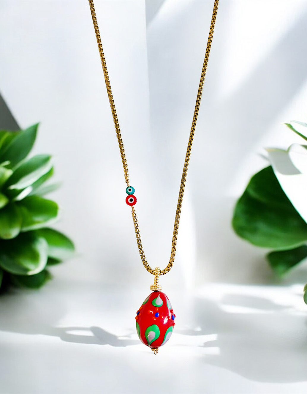 Katerina Psoma Necklace add a touch of artistic elegance to your look with handcrafted necklace featuring a stunning Murano glass pendant. Known for its vibrant colors and unique patterns.