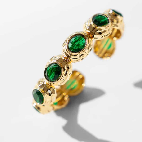 Katerina Psoma open cuff bracelet slips on effortlessly and adjusts to every wrist with ease. Made of gold-plated metal and set with oval faceted crystals in deep green, it shimmers just enough to draw the eye. With its vintage-inspired charm and just-right volume, it’s the kind of piece that goes with everything—day or night.