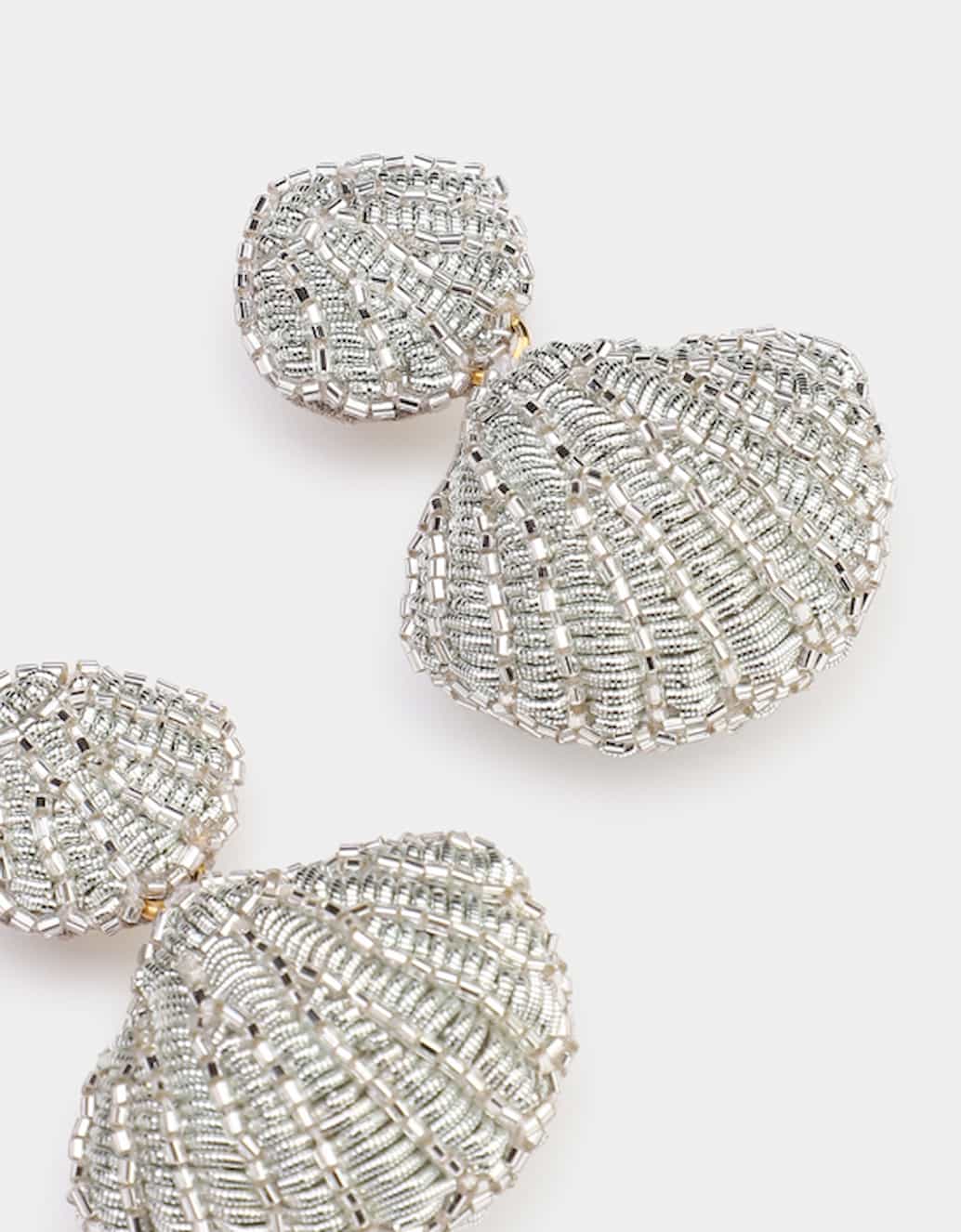 Olivia Dar the gold Aphrodite earrings draw inspiration from the ocean, seaside getaways, and tropical landscapes. Entirely hand-embroidered with 3D beads, they captivate with their delicate design. A true favorite in this mini version of our Conch models !