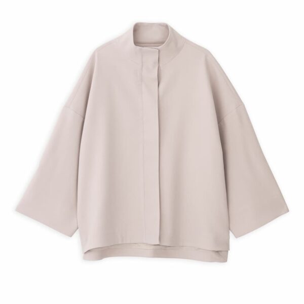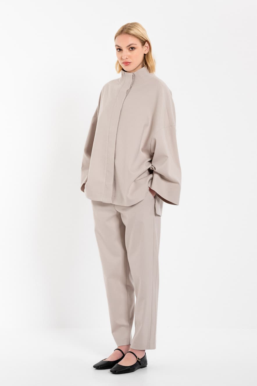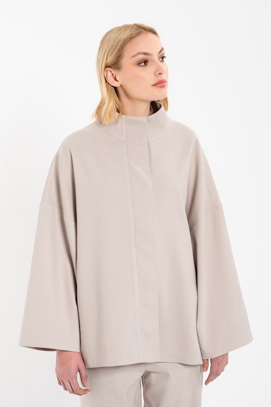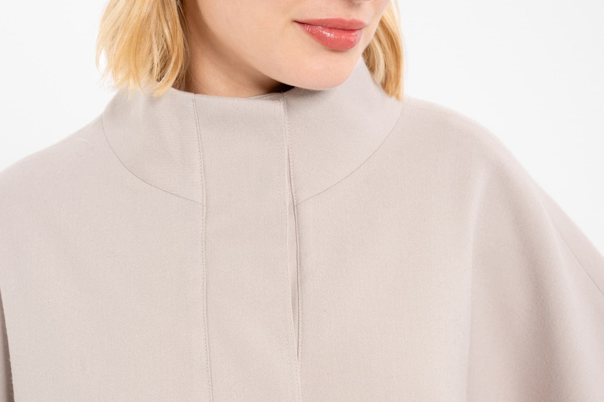 Philosophy twill cardigan with high neck, zipper closure, long bell sleeves.Made in Greece