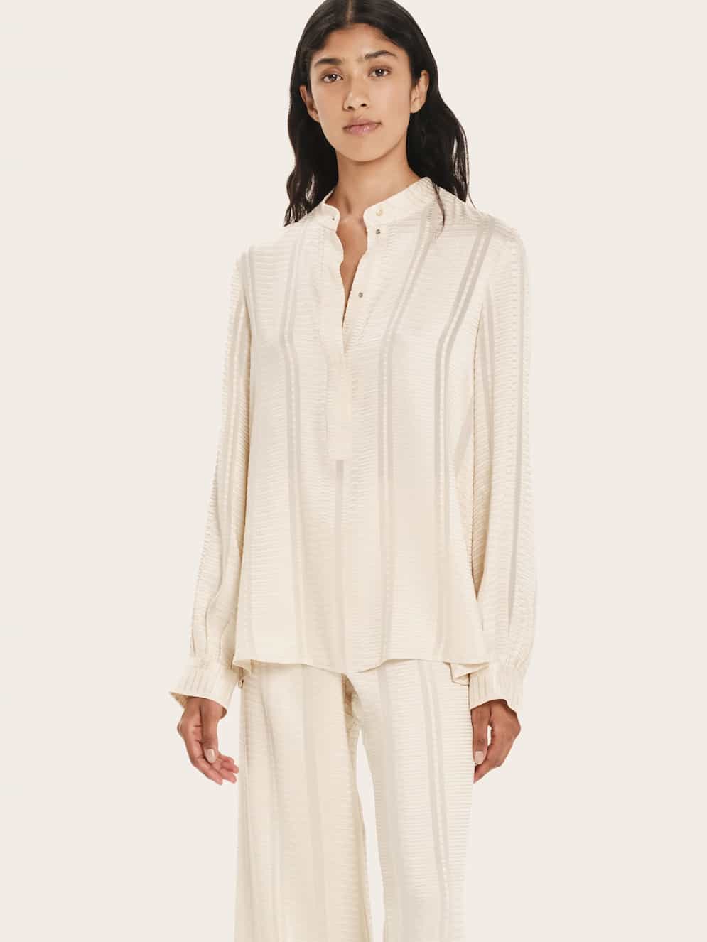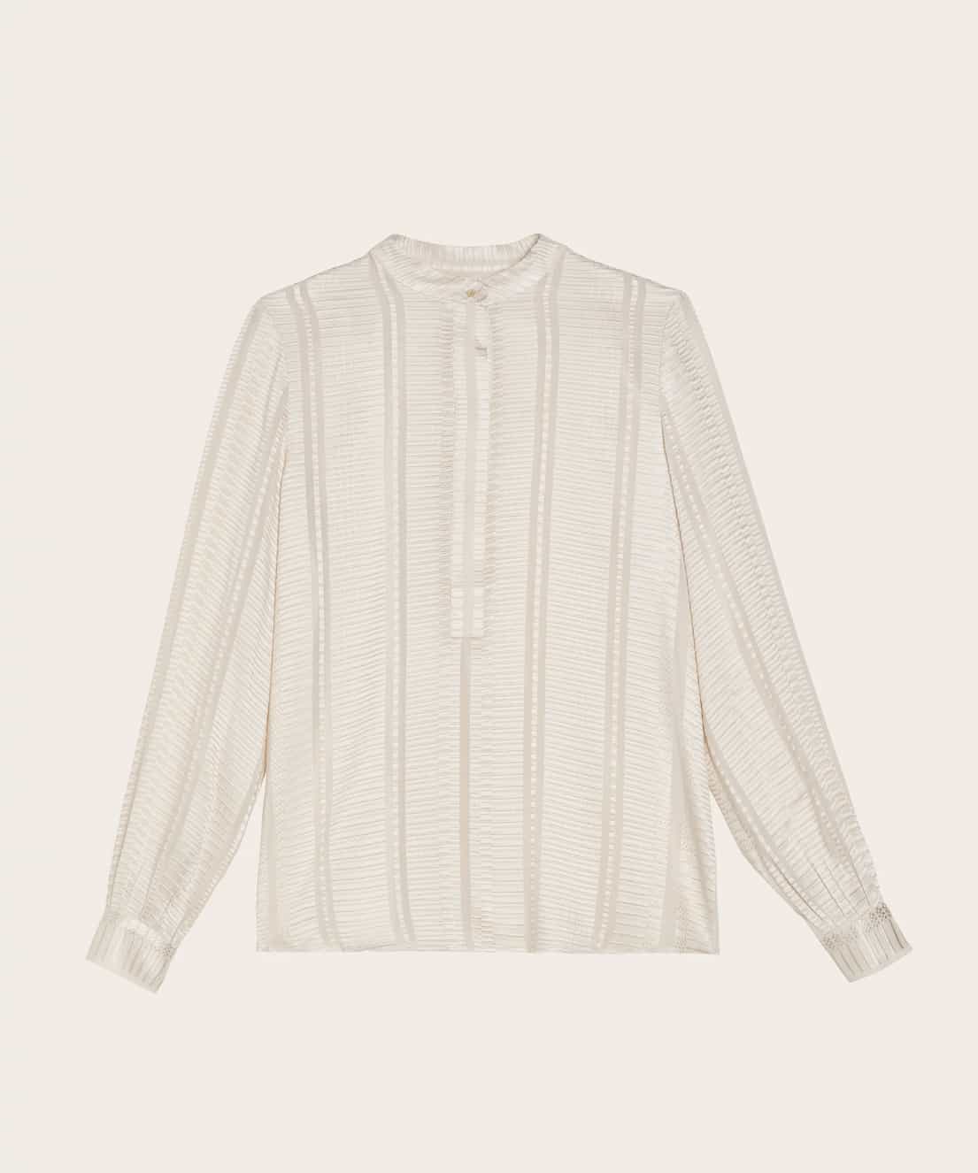 ZEUS+DION Long Sleeve Textured Silk Blouse Ecru - Image 2
