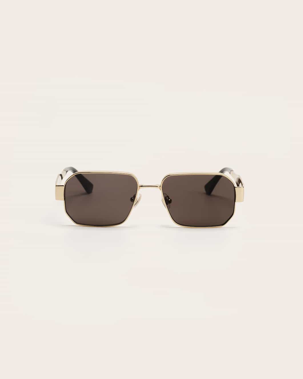 HomeShopACCESSORIESSunglassesZEUS+DION Square-Shaped Metallic Sunglasses With an Engraved Logo Gold Black
